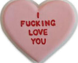 A sticker in the shape of a sugar cookie with bubble letters that reads "I FUCKING LOVE YOU".